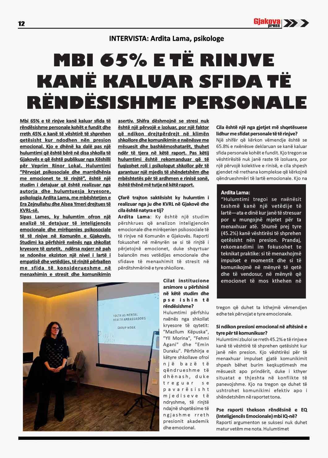 Në Gjakovapress 205: INTERVISTA: Ardita Lama, psikologe MBI 65 % E TË RINJVE KANË KALUAR SFIDA TË RËNDËSISHME PERSONALE