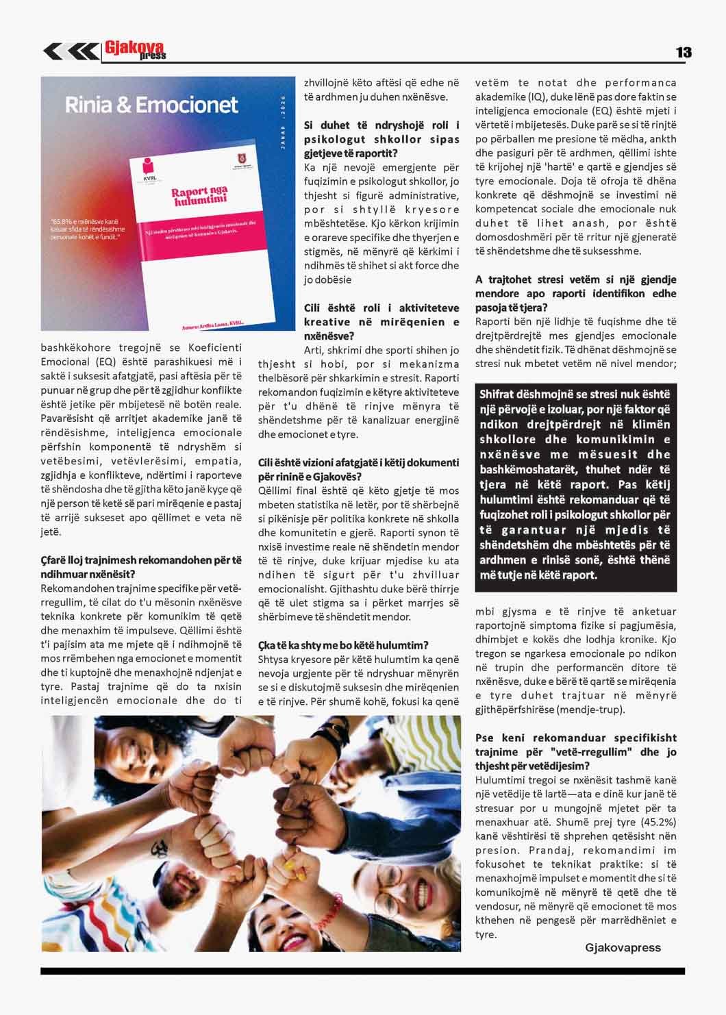 Ardita Lama: “Hulumtimi tregoi se nxënësit tashmë kanë një vetëdije të lartë—ata e dinë kur janë të stresuar por u mungojnë mjetet për ta menaxhuar atë. Shumë prej tyre (45.2%) kanë vështirësi të shprehen qetësisht nën presion. Prandaj, rekomandimi im fokusohet te teknikat praktike: si të menaxhojmë impulset e momentit dhe si të komunikojmë në mënyrë të qetë dhe të vendosur, në mënyrë që emocionet të mos kthehen në pengesë për marrëdhëniet e tyre”…..