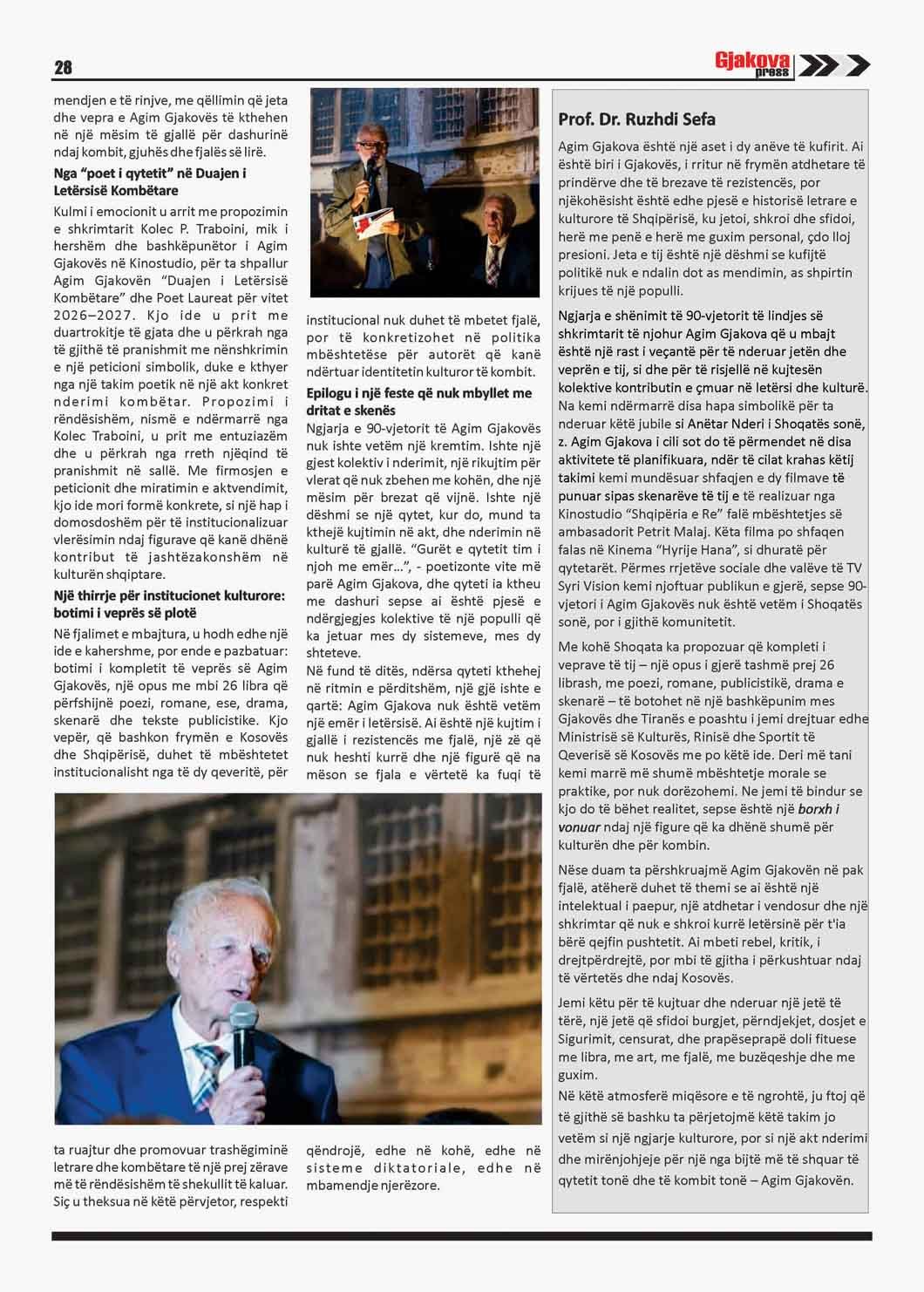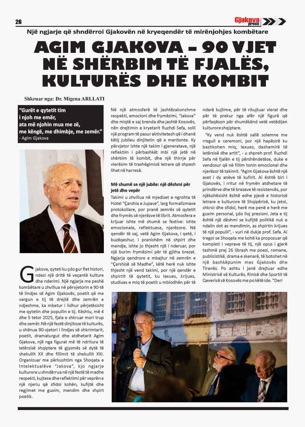 Në Gjakovapress nr. 202 online , AGIM GJAKOVA – 90 VJET NË SHËRBIM TË FJALËS, KULTURËS DHE KOMBIT