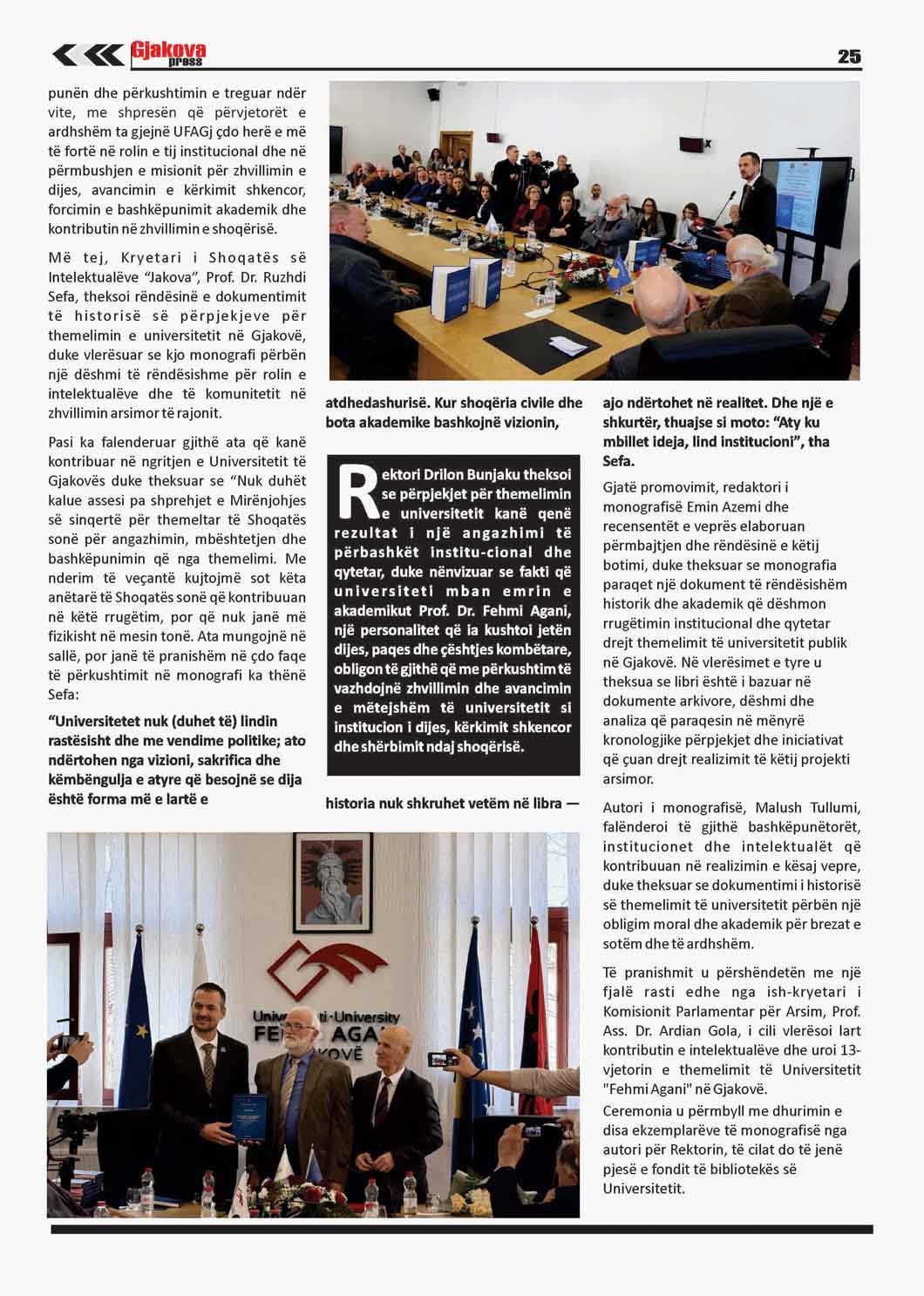 Në Gjakovapress nr. 207: MONOGRAFIA KUSHTUAR THEMELIMIT TË UNIVERSITETIT “FEHMI AGANI” TË GJAKOVËS